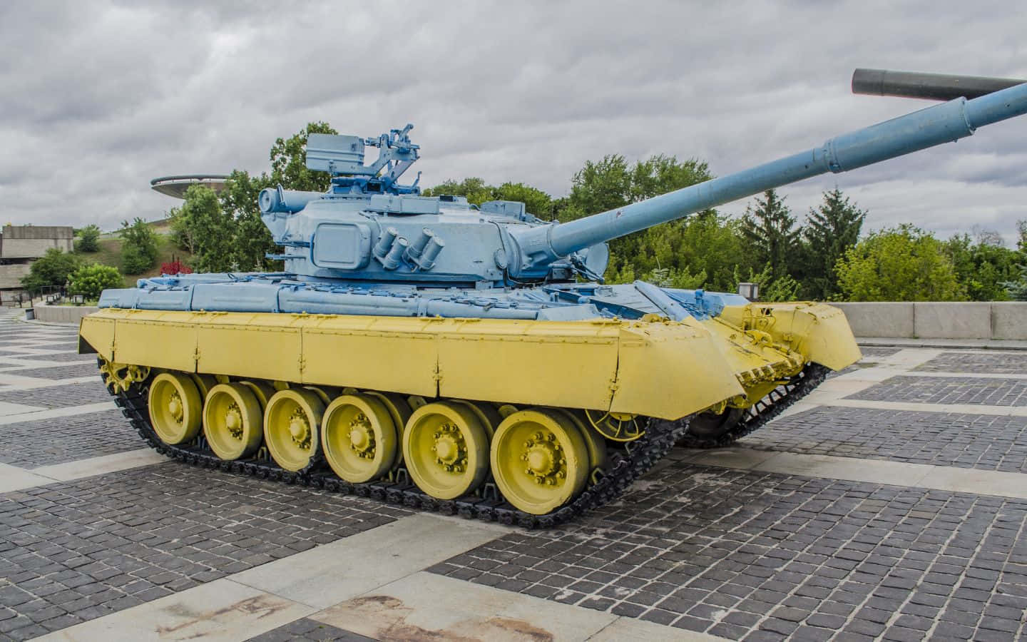 A Tank Is In The Middle Of A City At Sunset Wallpaper -