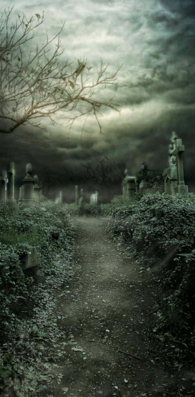 Explore The Mysteries Of The Spooky Night In This Halloween Graveyard. Wallpaper