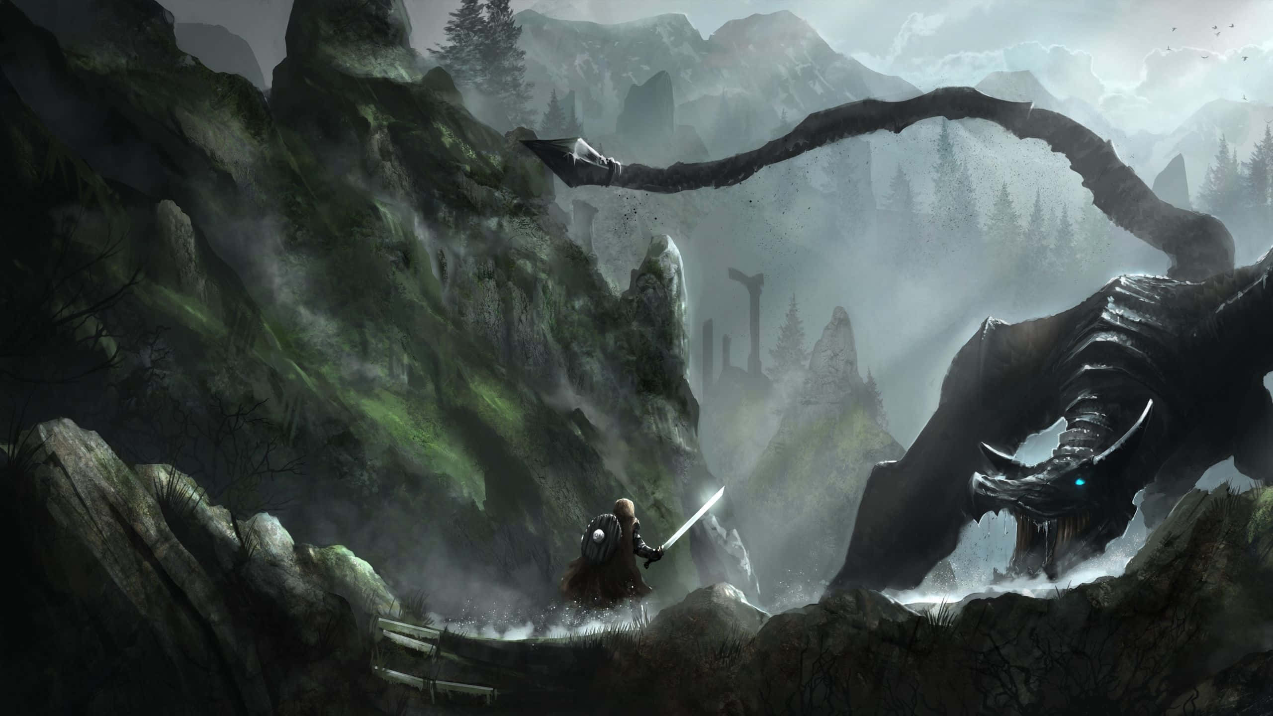 Explore The Dragon-ridden Land Of Skyrim Wallpaper -