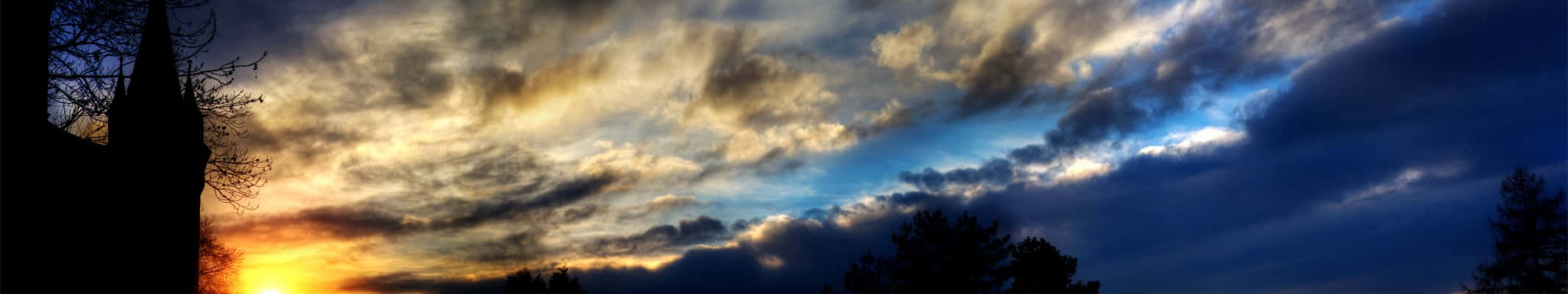 A Beautiful Sunset Over A Lake In A Mountainous Area Wallpaper -