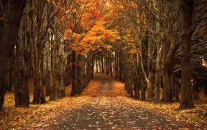 Fall Aesthetic Macbook Pathway And Trees Wallpaper