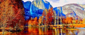 3440x1440 Fall Season With Lake And Mountain View Wallpaper -