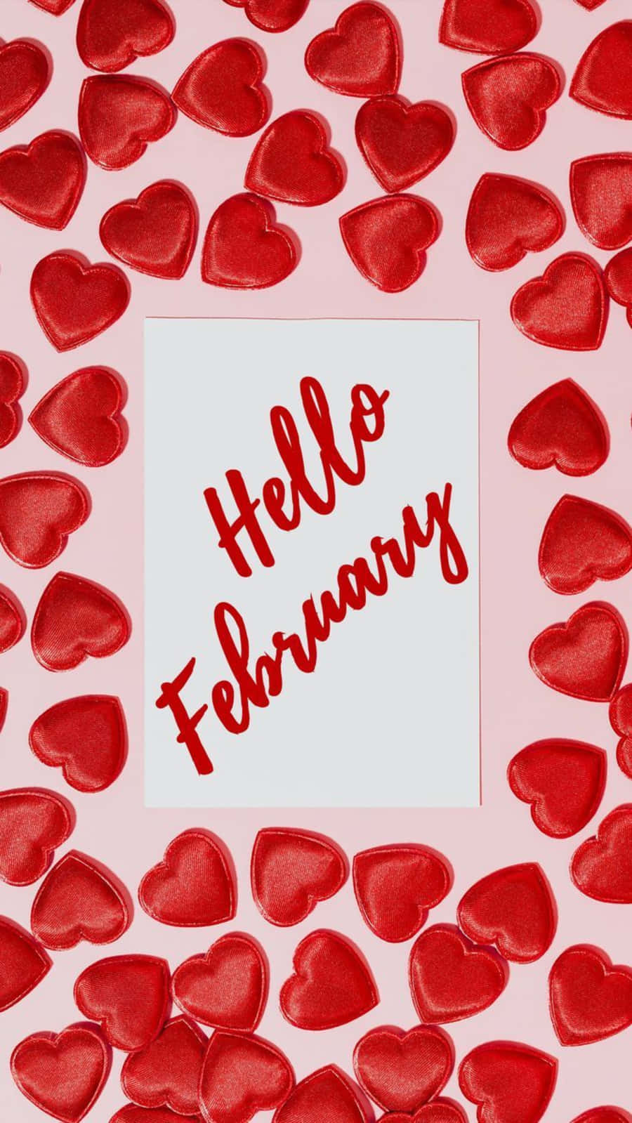 A Hand Holding A Beautifully Designed February Iphone Calendar Wallpaper On The Smartphone Screen. Wallpaper -