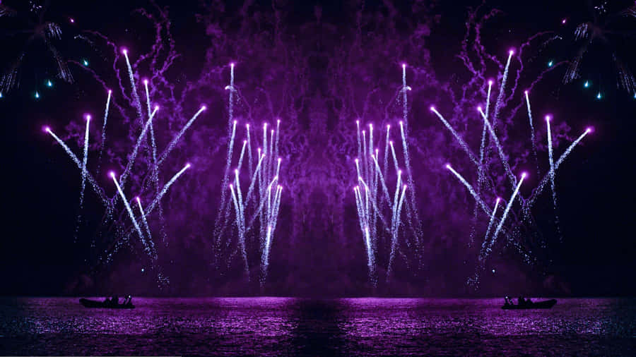 An Electrifying Purple Lightning Strikes Against A Beautiful Night Sky Wallpaper -