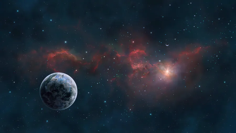 Explore The Depths Of Outer Space With A Stunning Red Backdrop Wallpaper -