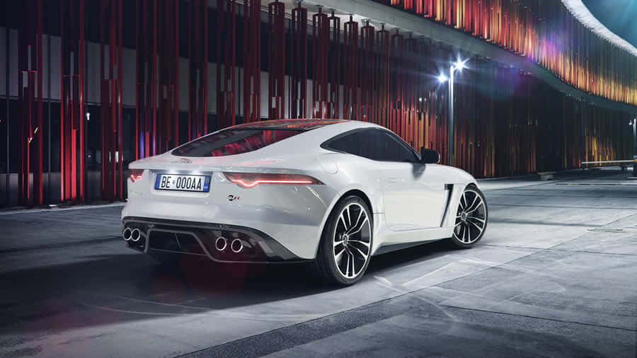 A Black And White Car Sitting On The Street At Night Wallpaper -