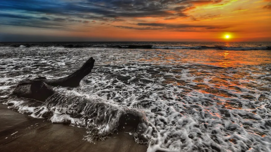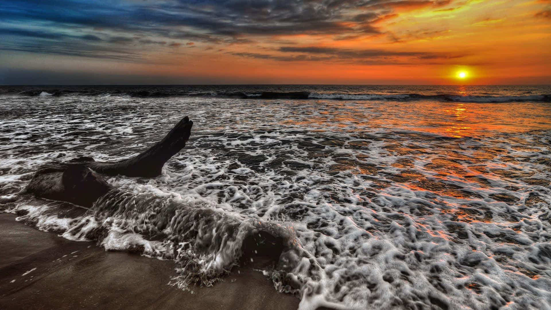 Golden Orange Sunrays Light Up A Beach Paradise Wallpaper -