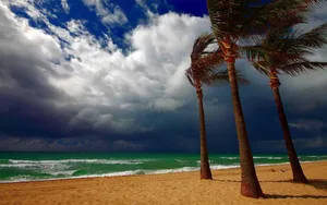 "bending To The Wind - Coconut Trees On The Shoreline" Wallpaper -