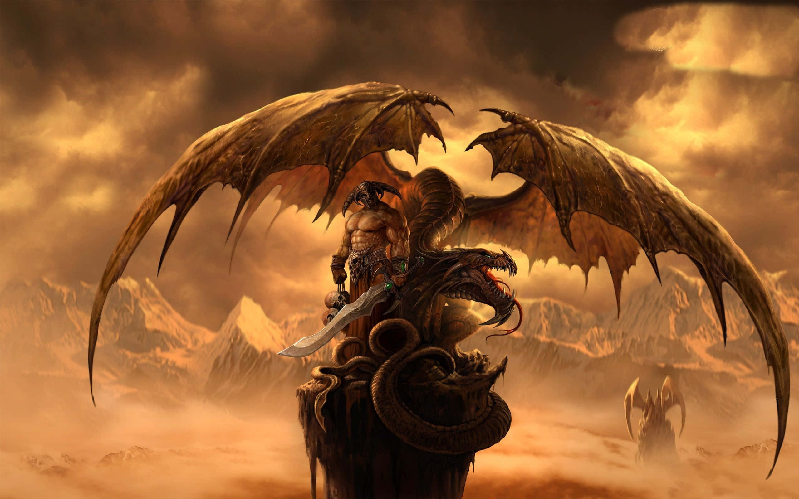 A Man Riding A Horse With A Dragon On It Wallpaper -
