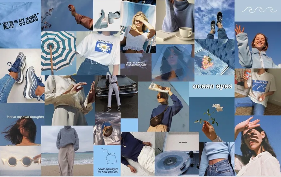 Collage Aesthetic Pastel Blue Desktop Wallpaper -