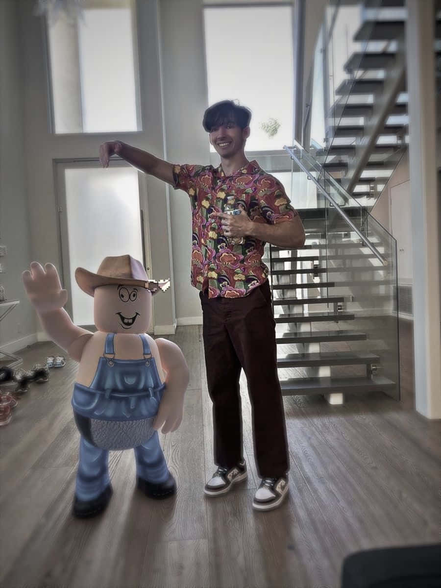 A Young Man Standing In Front Of A Couch Wallpaper -