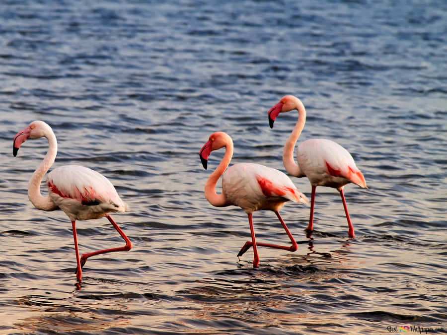 A Flamingo Standing In The Shallow Water Wallpaper -