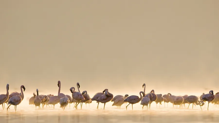 A Flamingo Standing In The Shallow Water Wallpaper -