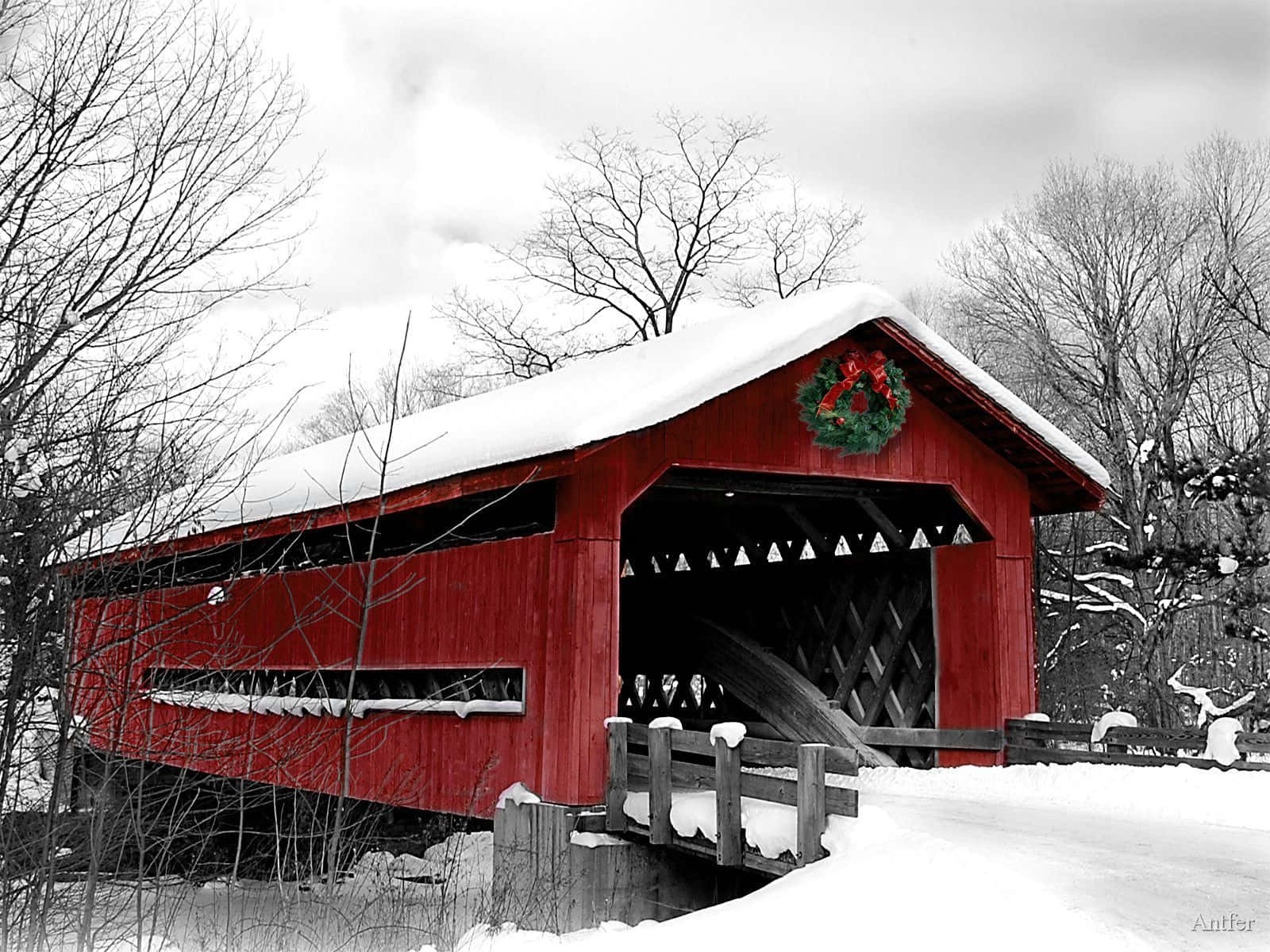 Related Flume Covered Bridge New Hampshire Winter Wallpaper