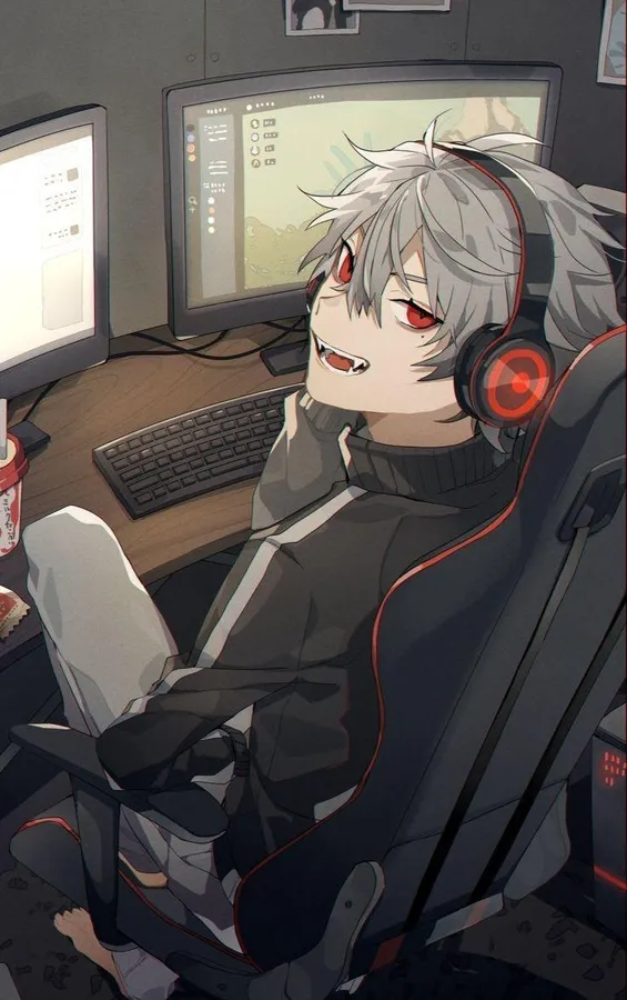 An Anime Boy Enjoys His Time Computer Gaming Wallpaper -