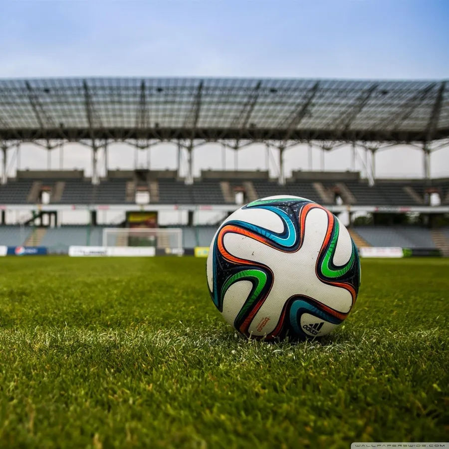 Football Galaxy Ball On Stadium Grassy Ground Wallpaper -