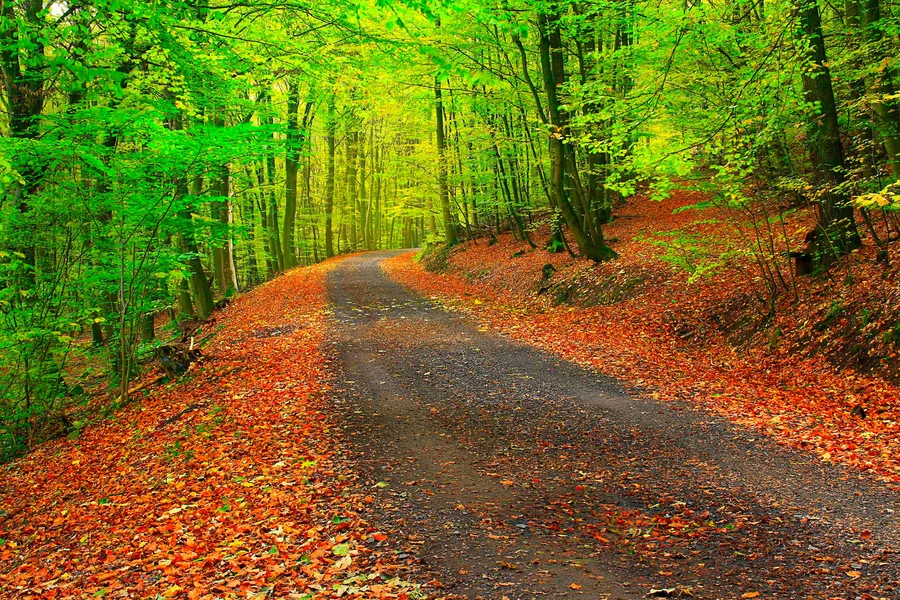 Forest Road During Early Fall Wallpaper