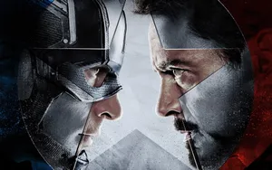 "epic Showdown Between Iron Man And Captain America On Laptop Screen" Wallpaper -