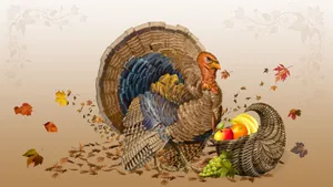 Thanksgiving Turkey With Pumpkins And Corn Wallpaper -