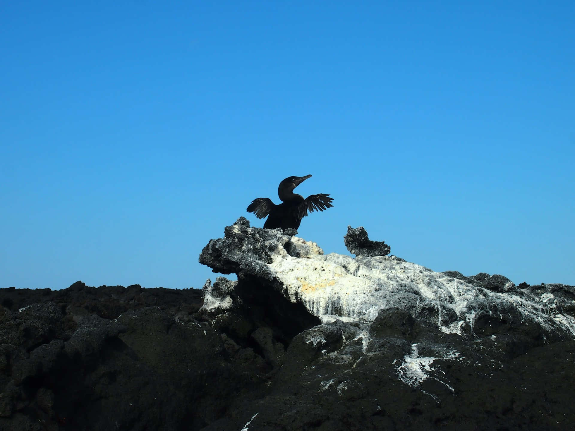 Galapagos Cormorant Spreading Wings Wallpaper -