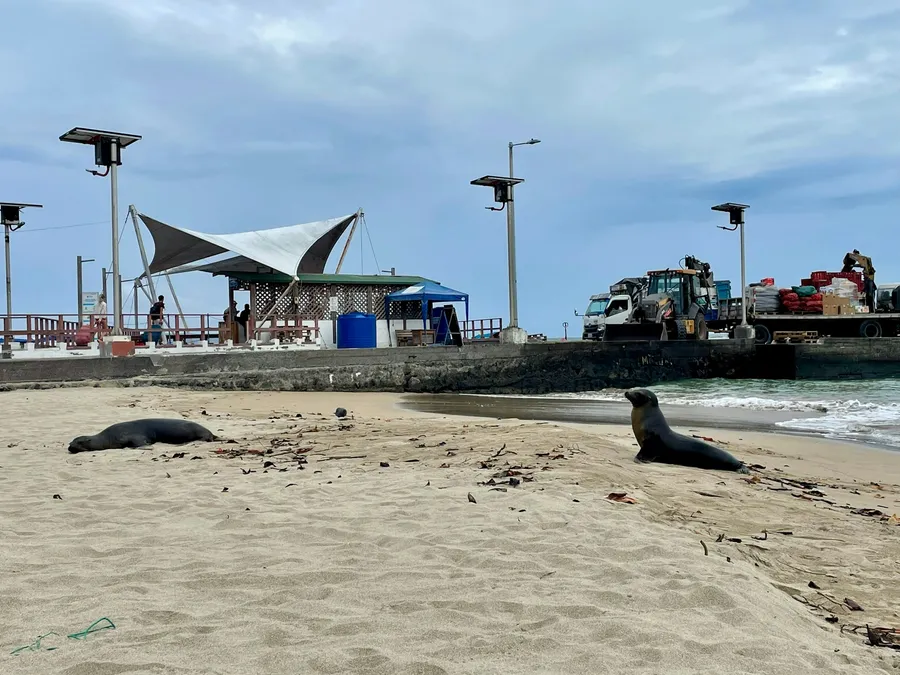 Related Galapagos Sealionson Human Infrastructure Wallpaper