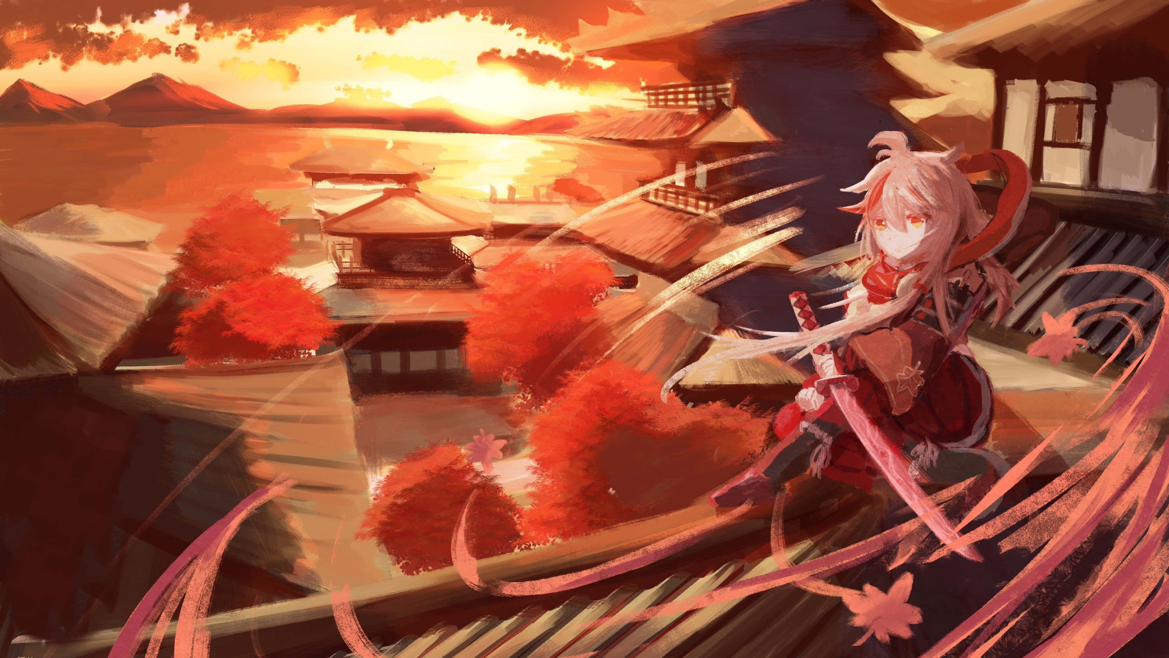 Kazuha Genshin Impact Katana Fanart Wallpaper -