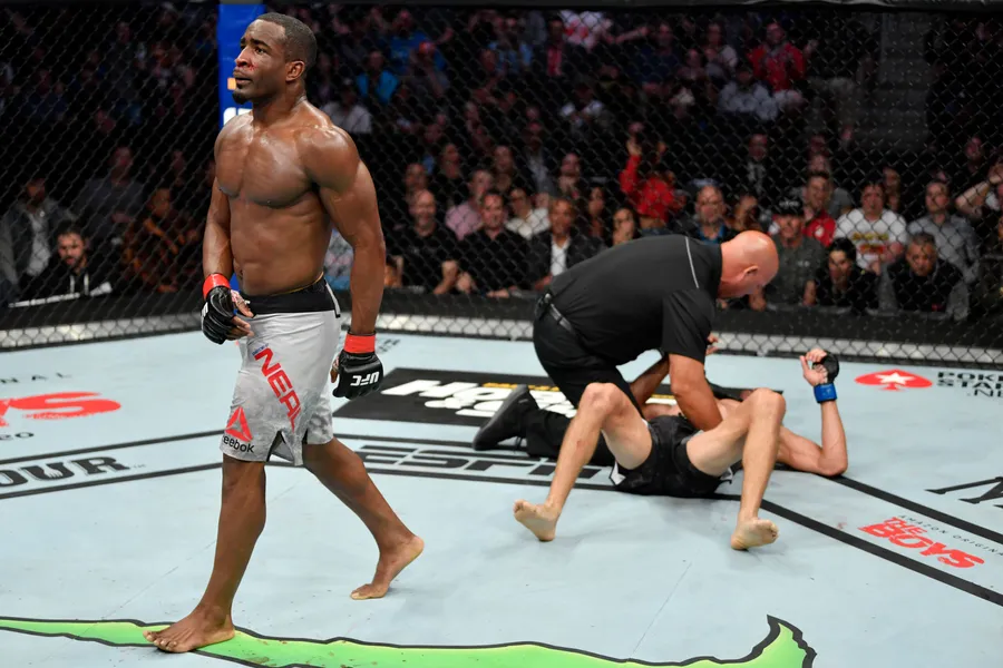 M M A Fighter Geoff Neal Weigh In Pose Wallpaper -