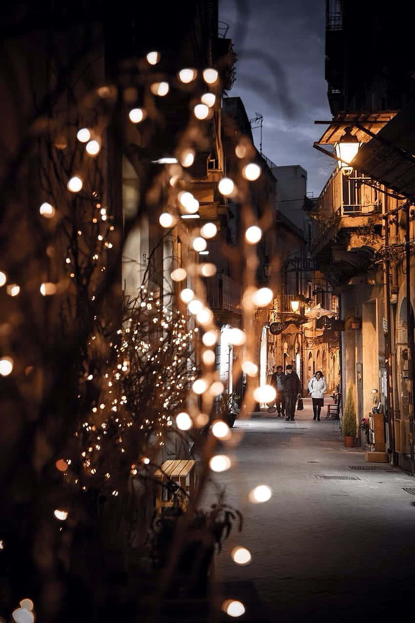A String Of Pink Fairy Lights Blossoming In The Night Wallpaper -