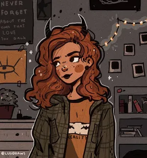 Grunge Cartoon Girl Curly Purple Hair Wallpaper