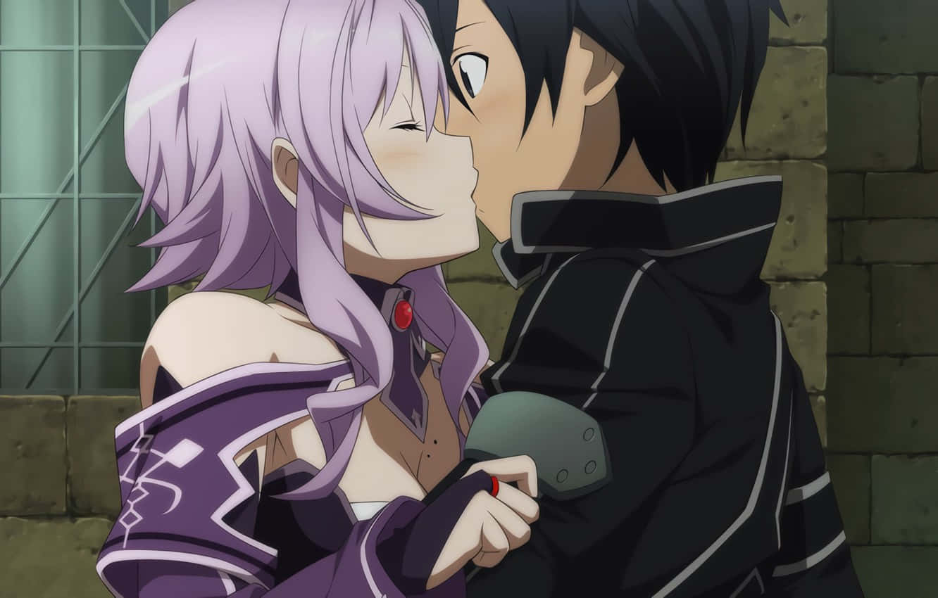 Two Anime Characters Kissing Each Other Wallpaper -