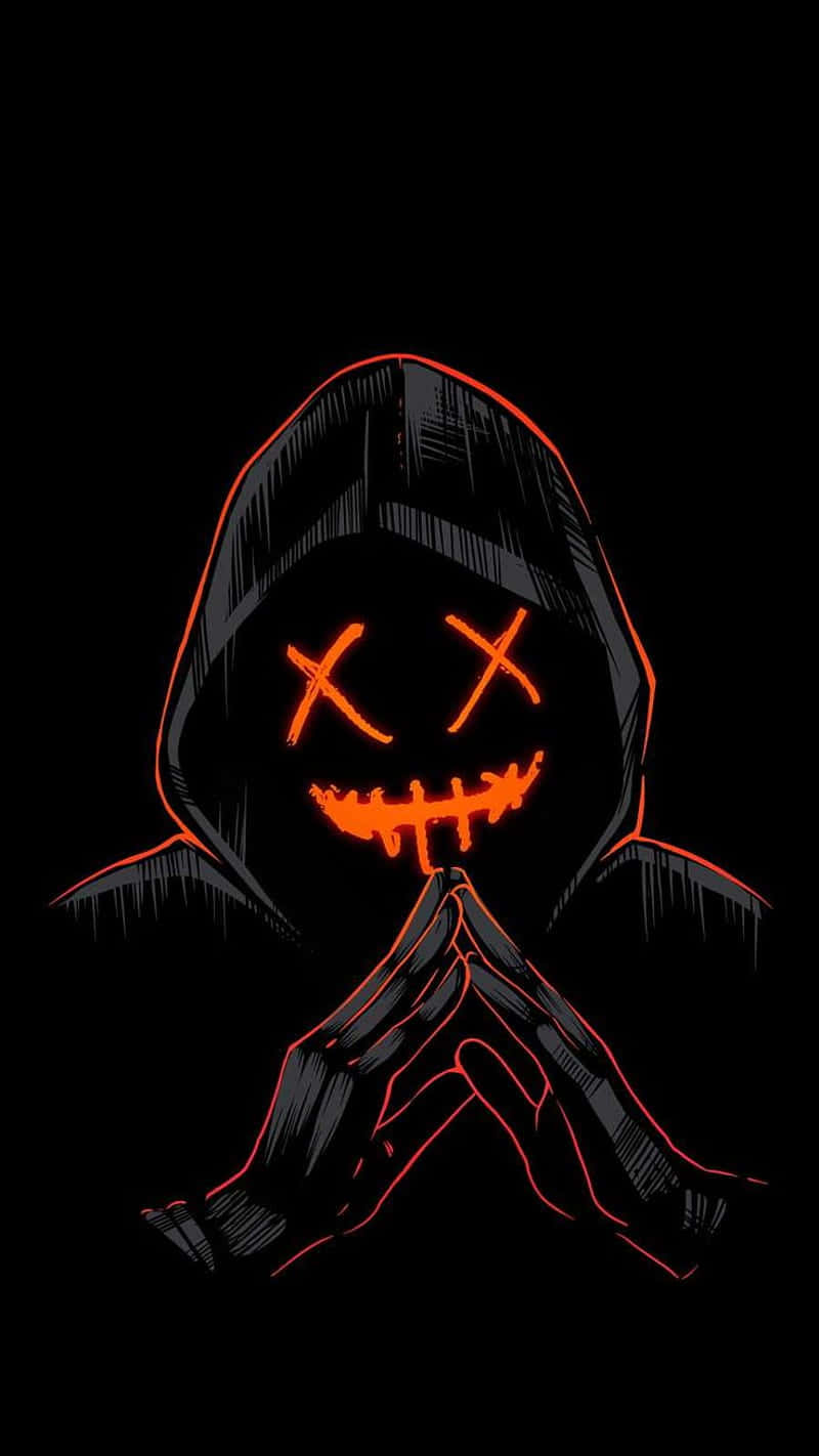 Mysterious Hooded Figurewith L E D Mask Wallpaper -