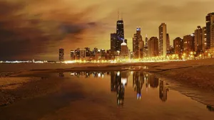 Dark Aesthetic Chicago City At Night Wallpaper -