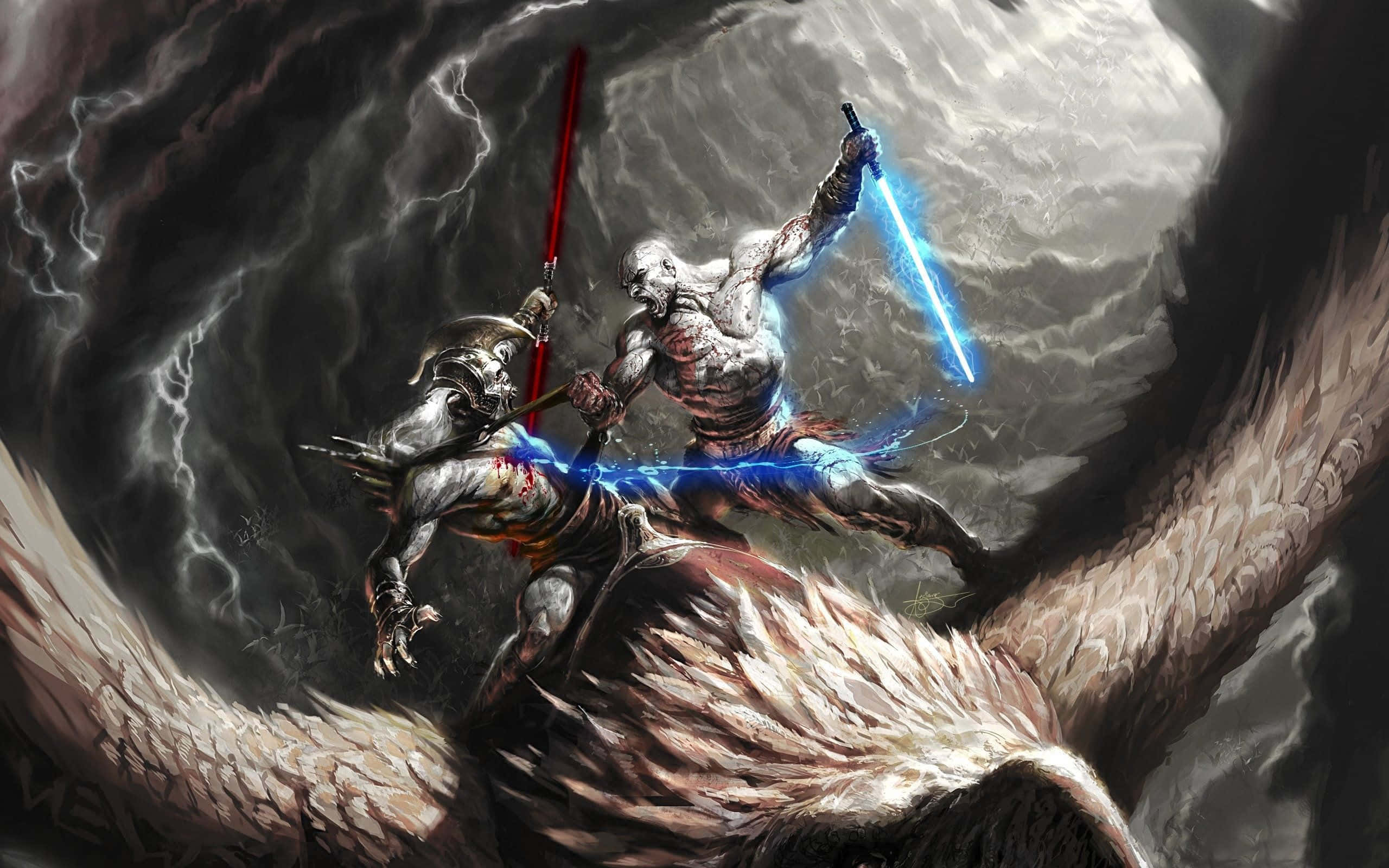 Ares And Kratos Battle In God Of War 3 Wallpaper -