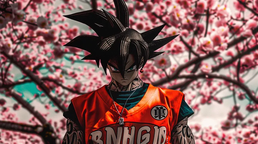 Goku Fashion Under Cherry Blossoms Wallpaper