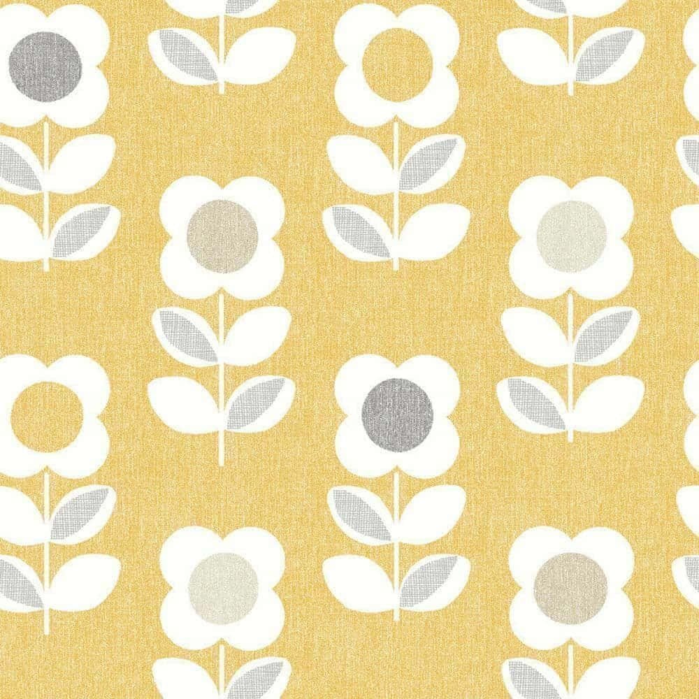 Yellow 70s Floral Motif Wallpaper -