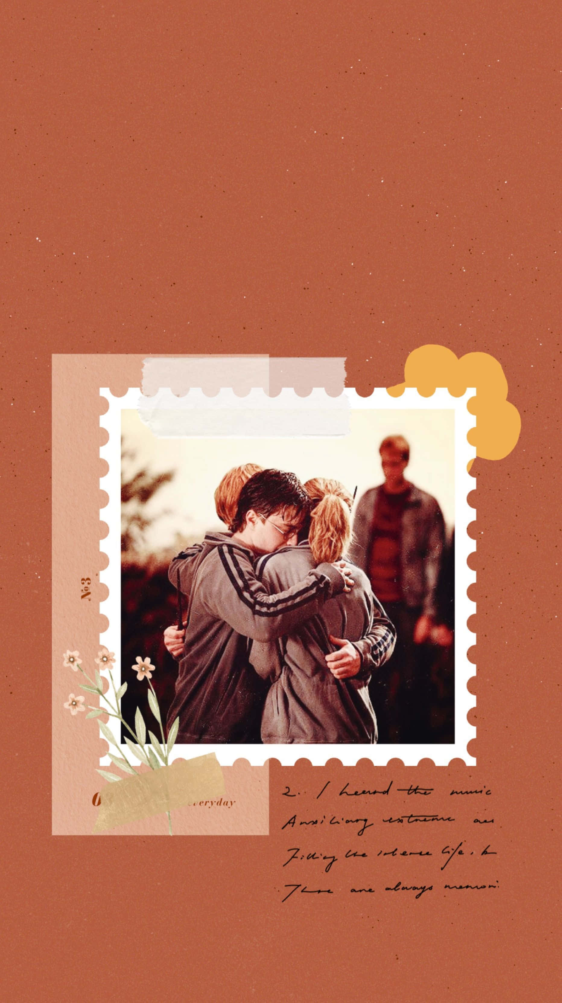 Golden Trio Harry Leaning Hermione Wallpaper -