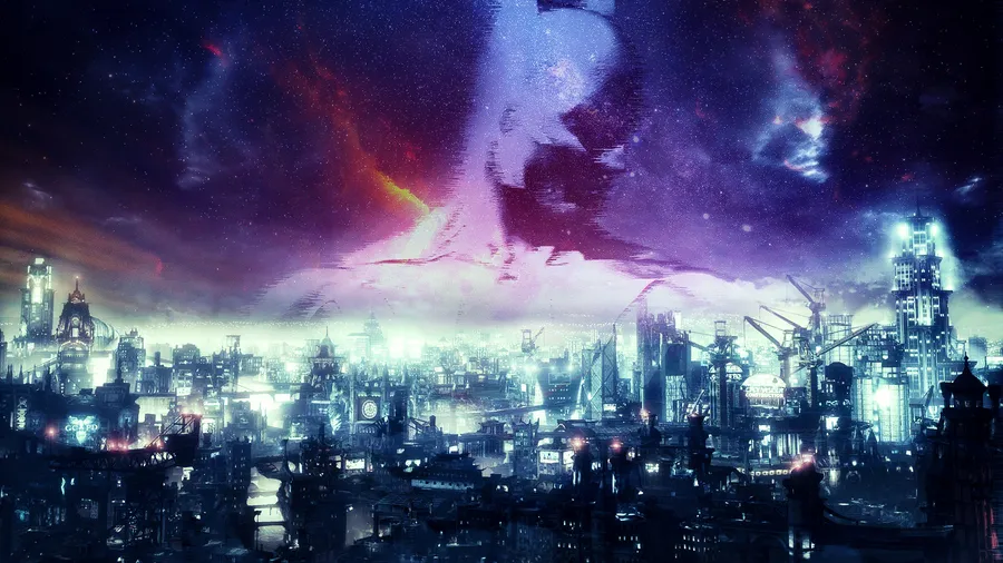 A Painting Of A City At Night Wallpaper -