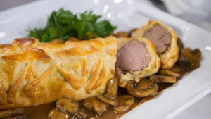 Gourmet Beef Wellington Topped With Wild Mushrooms -