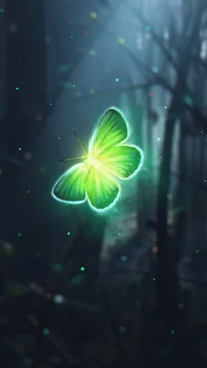 Green Butterfly Luminous Flying Up Wallpaper -