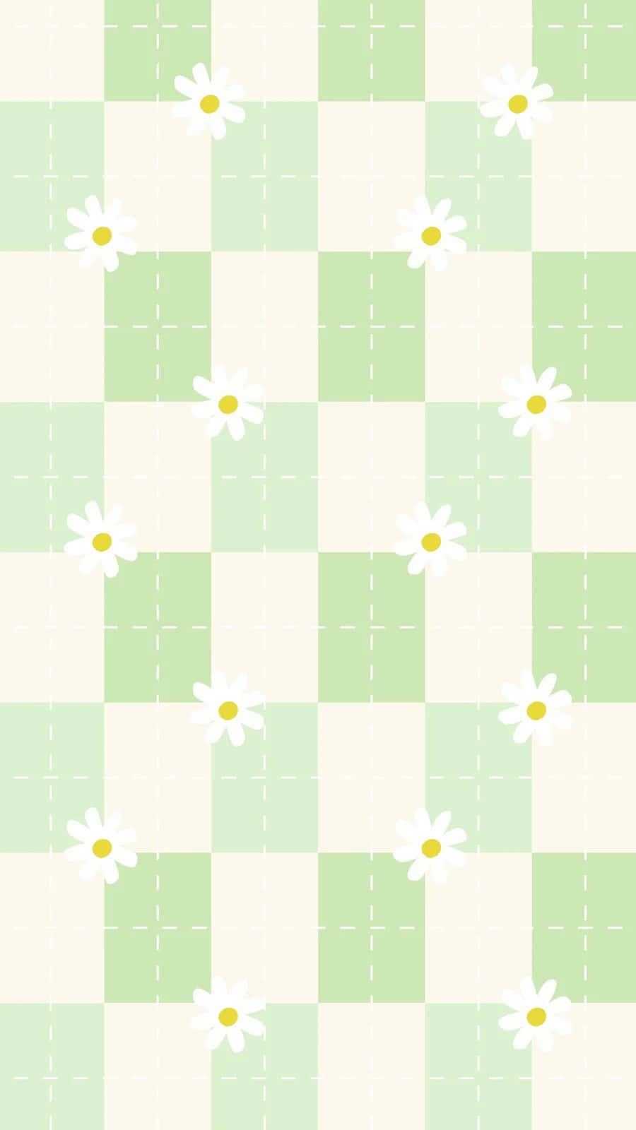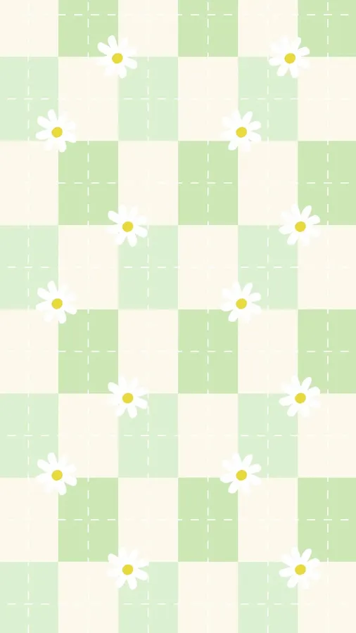 Related Green White Checkered Daisy Pattern Wallpaper
