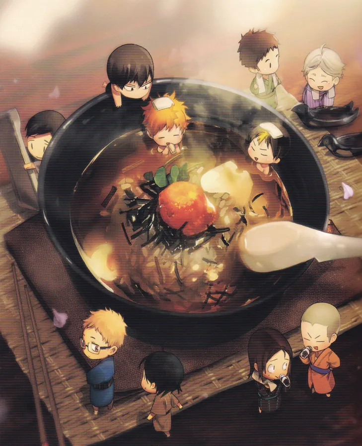 Related Haikyuu Characters As Miniatures In Ramen Bowl Wallpaper