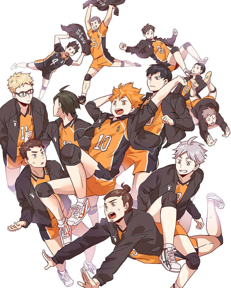 Haikyuu Team Karasuno Dynamic Pose Wallpaper