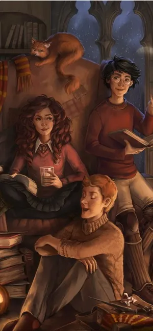Golden Trio Harry Leaning Hermione Wallpaper -