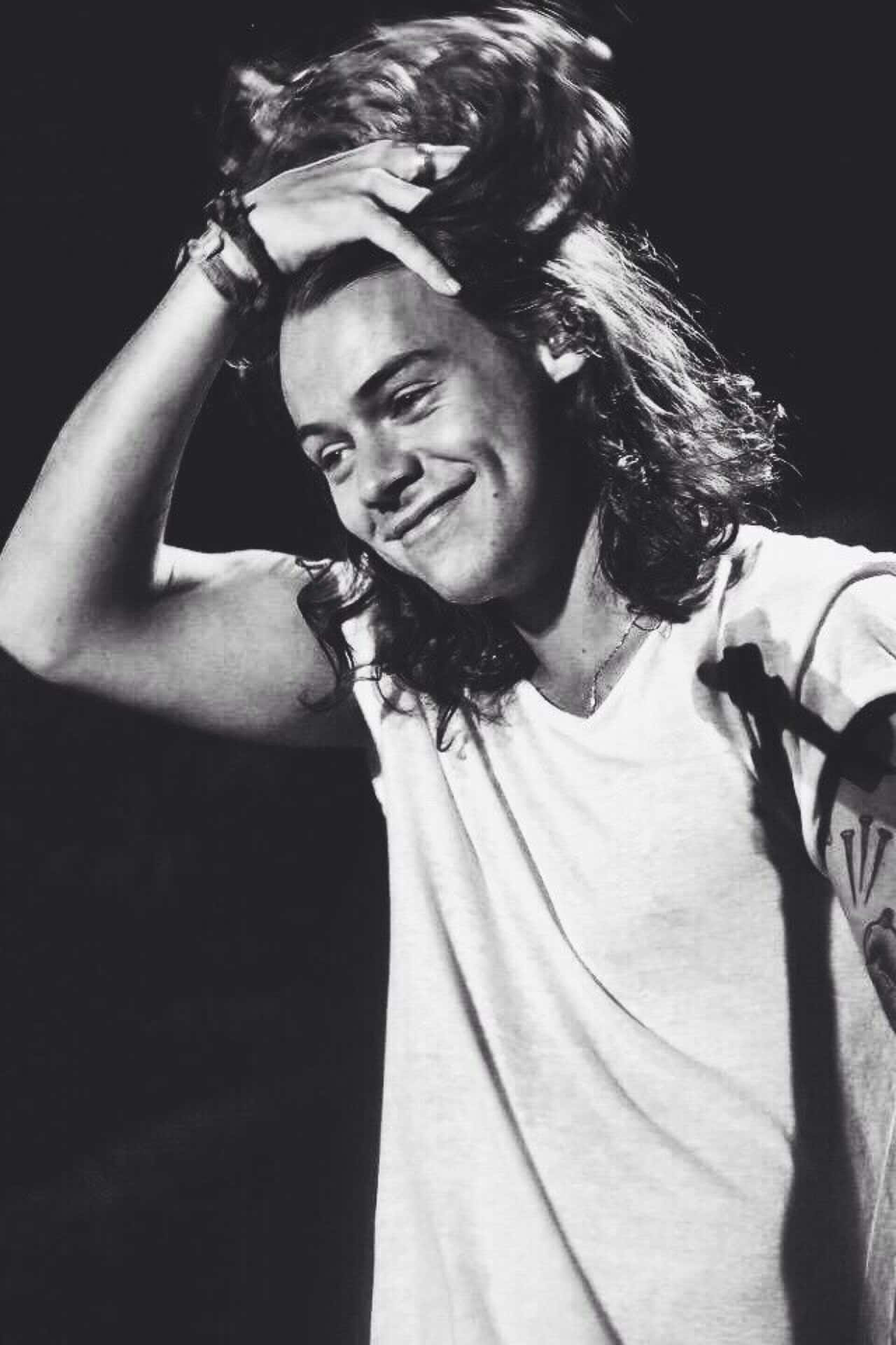 The Iconic Harry Styles In A Captivating Black And White Portrait. Wallpaper -