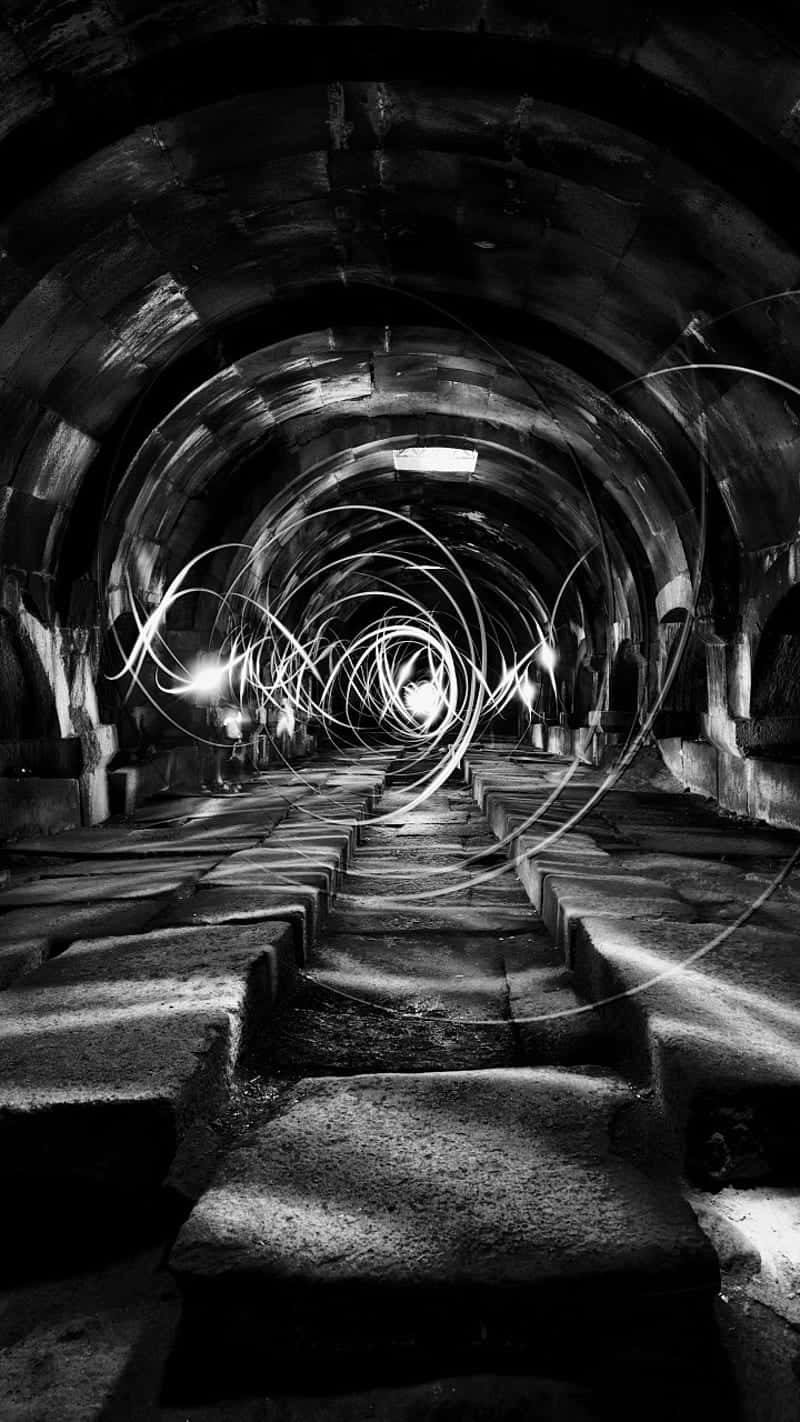 A Dark Staircase With A Staircase And A Chandelier Wallpaper -