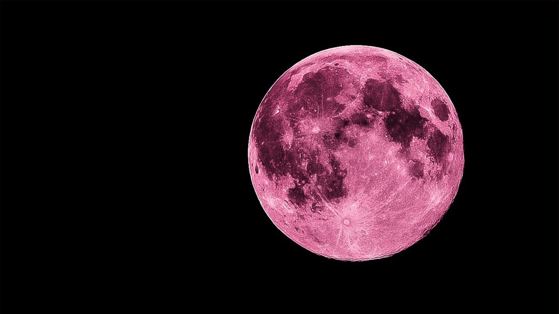 Look Into The Night Sky And Take In The Beauty Of The Pink Moon Wallpaper -