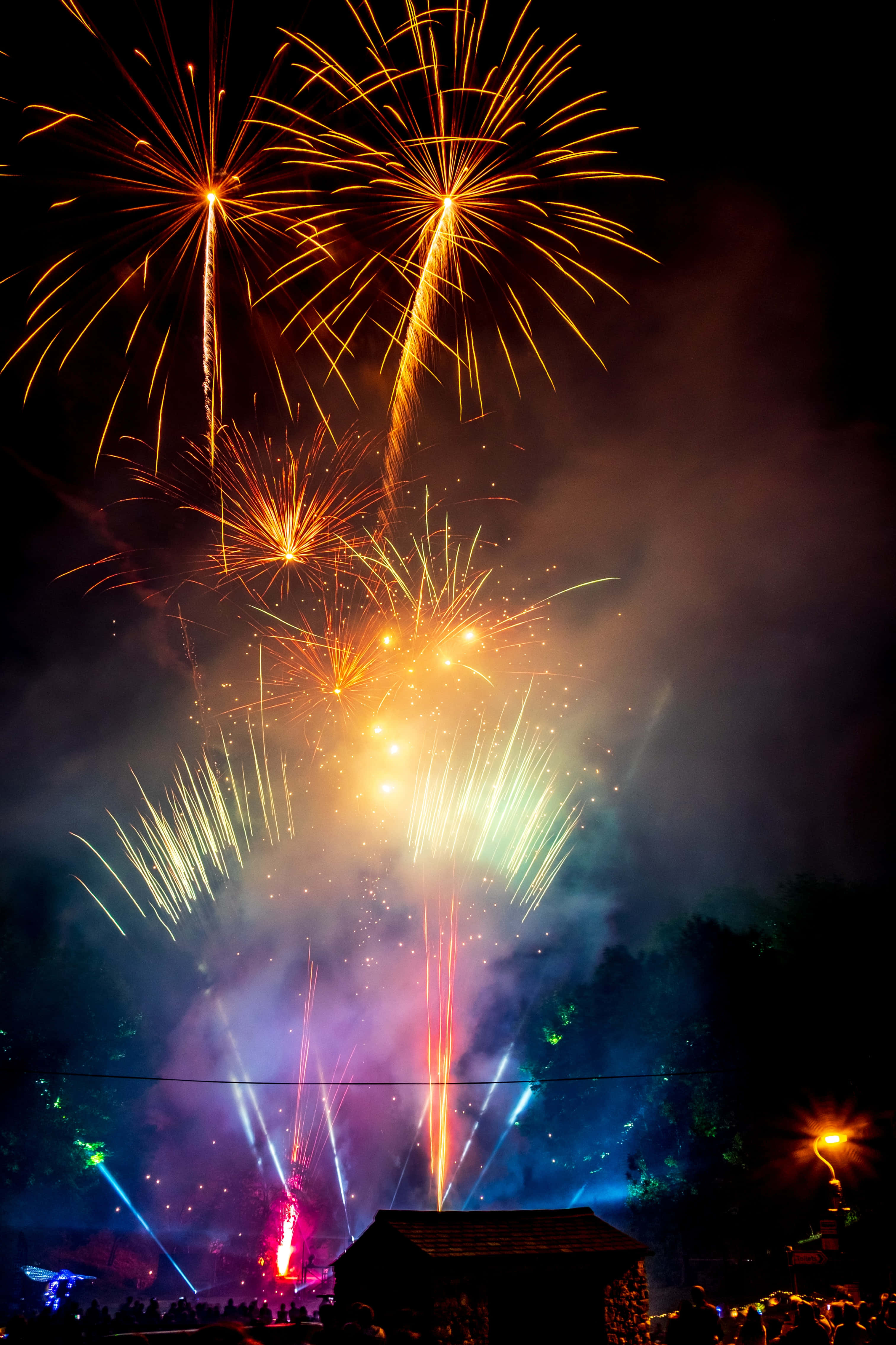 Fireworks Over The Water With A City In The Background Wallpaper -