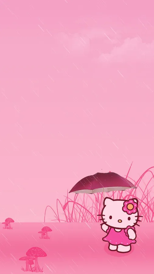 Hello Kitty In The Rain With An Umbrella Wallpaper -