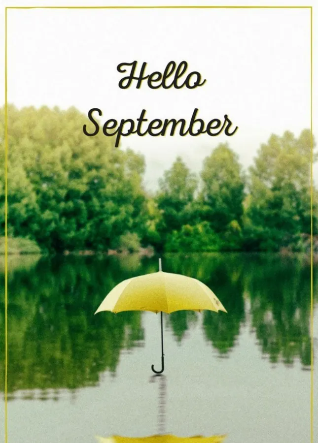 Hello September Greeting Yellow Umbrella Wallpaper -