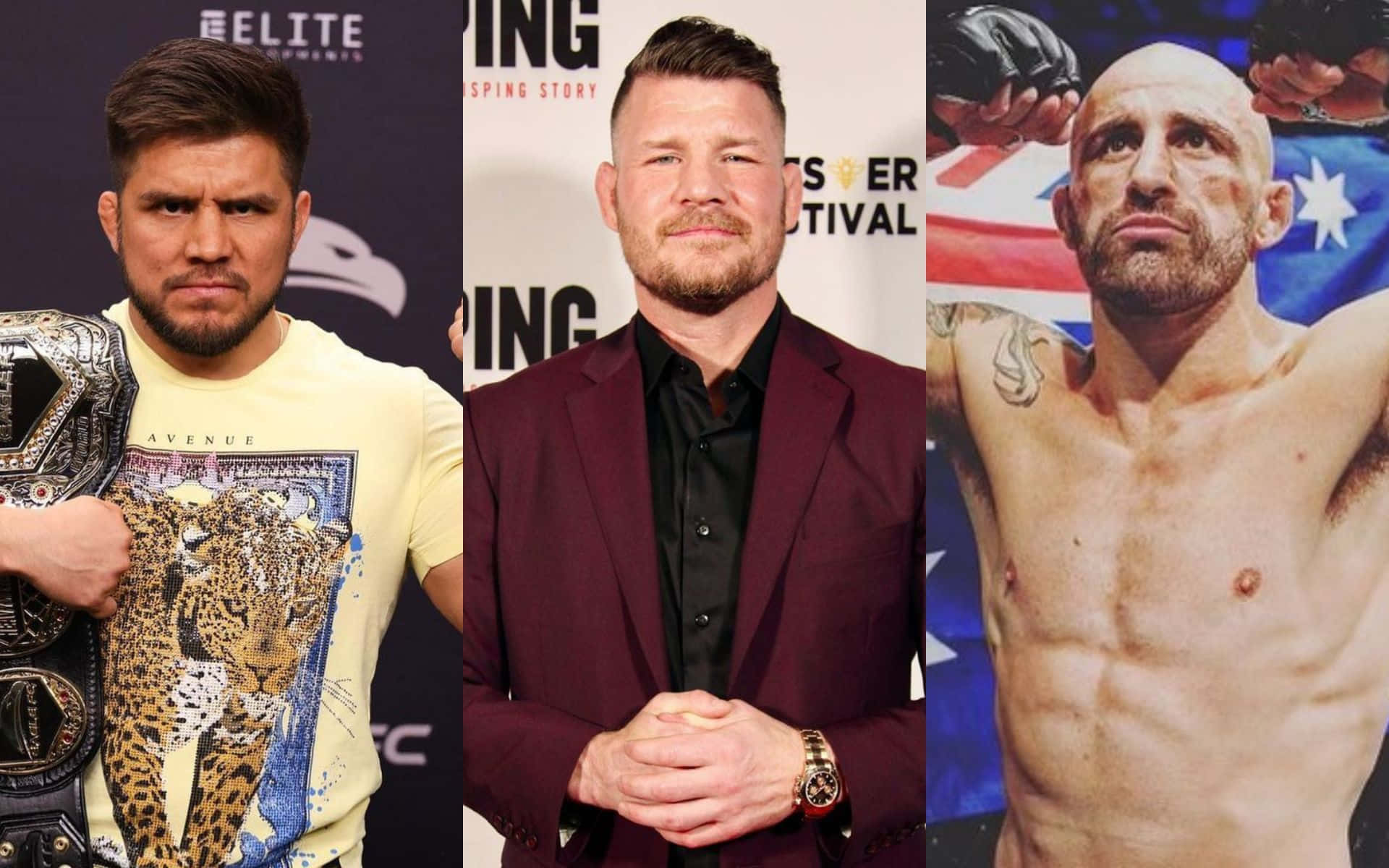 Henry Cejudo With Michael Bisping And Alex Volkanovski Wallpaper